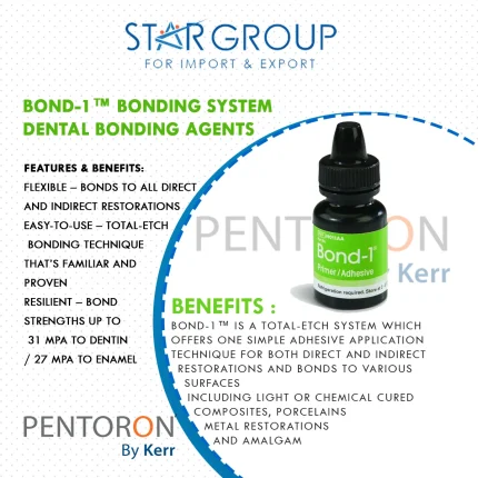 لاصق حفر ذاتي خال من المذيباتBond-1 SF Solvent-Free SE لاصق هو مادة لاصقة ذات علاج خفيف ، طبقة واحدة ، حفر ذاتي وهي حقًا في اتحاد خاص بها! قام Pentron بإزالة المذيب بشكل فعال ، الموجود فعليًا في جميع المواد اللاصقة الأخرى الموجودة في السوق اليوم ، مع الحفاظ على قوة الرابطة العالية المرتبطة بعوامل الترابط التقليدية. يشكل Bond-1 SF رابطة تفاعلية بين معادن بنية السن وراتنجات عامل الترابط ، دون استخدام الأسيتون أو الماء أو الكحول ، مما يوفر رابطة فائقة لكل من العاج والمينا.يتوفر Bond-1 SF Solvent-Free SE لاصق في نظام مناسب لتوصيل المحاقن ، ويقدم نصائح إبرة متدفقة فريدة تسهل وضعًا سهلًا ومباشرًا في الإعداد.خالٍ من المذيبات - يحمي من الحساسية ، ويقضي على المشكلات الشائعة الحساسة للتقنية مثل التجفيف السفلي والإفراط. كما يمنع التبخر