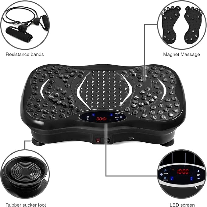 منصة اهتزاز لكامل الجسم، هل ما زلت تبحث عن طريقة أسهل للتمرين أو فقدان بعض الوزن؟ إليك آلة الاهتزاز الخاصة بنا، المعدات الأكثر شعبية بين التمارين السلبية. الجهاز مصمم لتمرين الجسم بالكامل مع 180 مستوى سرعة و3 قنوات تدريب. كن مستعدًا لإعادة تشكيل جسمك في الذراعين والورك والساقين والبطن مع منصة لوحة الاهتزاز لكامل الجسم أثناء مشاهدة التلفزيون أو الاستماع إلى الموسيقى في المنزل أو المكتب. جهاز تحكم عن بعد وأوضاع مختلفة ومستويات سرعة وهيكل ايه بي اس وقاعدة ثابتة آمنة ومتعددة الملحقات ومشغل USB وبلوتوث.